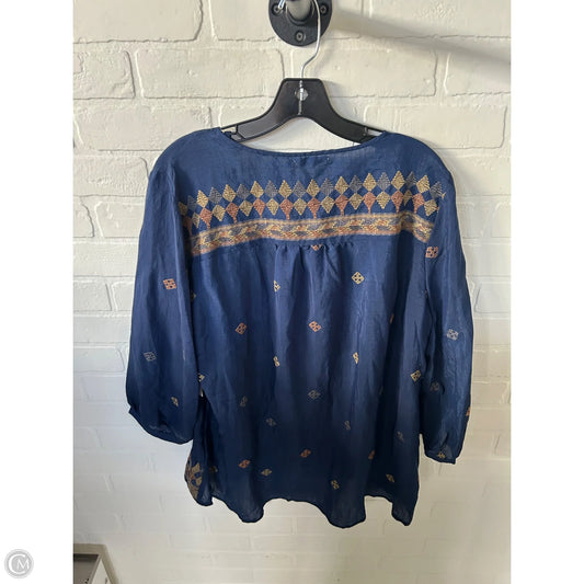 Top 3/4 Sleeve By Figuero & Flower In Blue & Grey, Size: Xl
