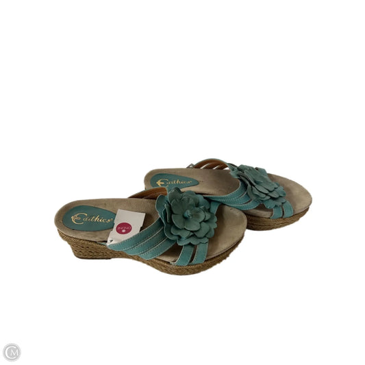 Sandals Heels Wedge By Earthies In Teal, Size: 6