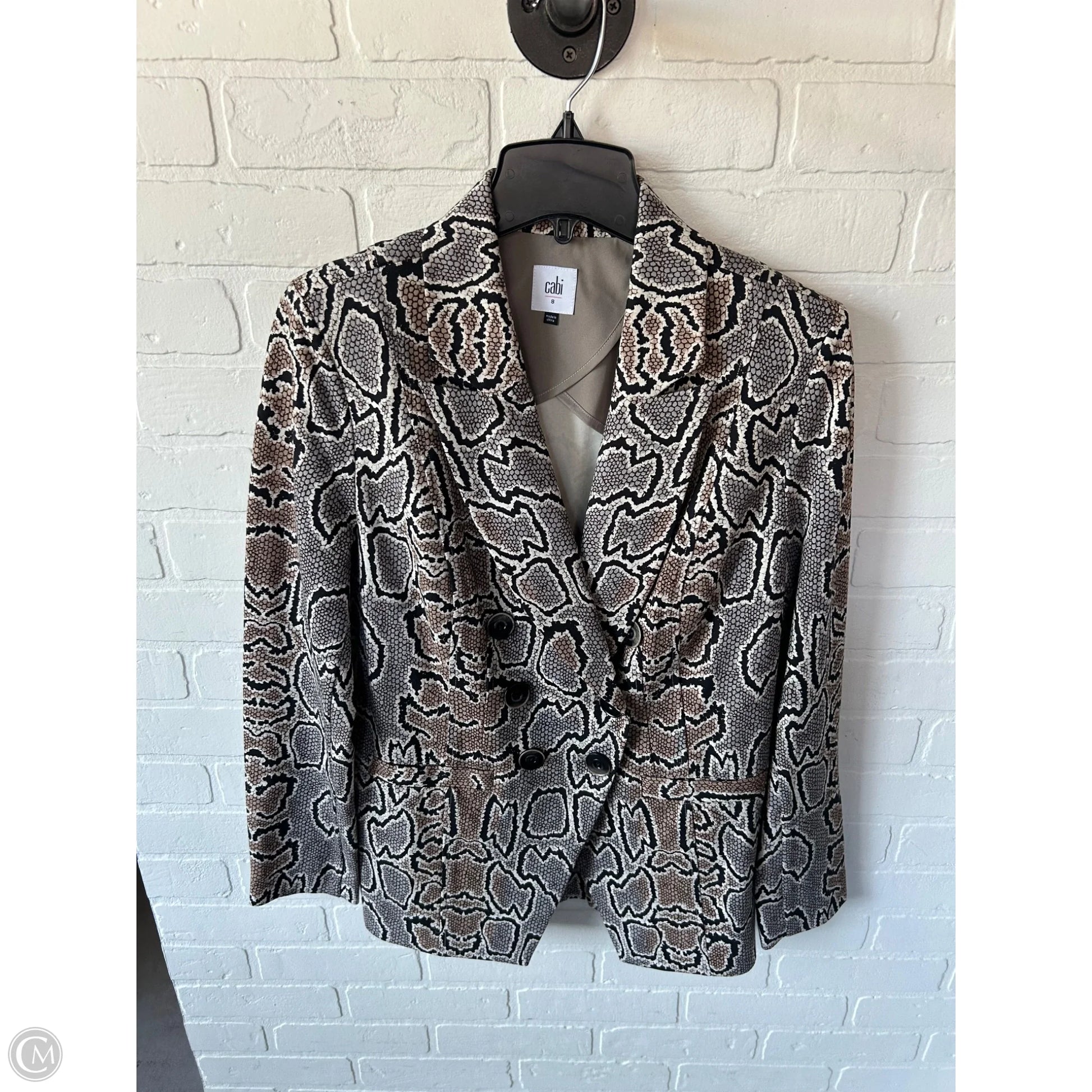 Unleash your inner fashionista with this stunning Cabi blazer in chic brown & grey. Size M, this piece exudes confidence and style with its tailored fit and luxe fabric. Stand out!