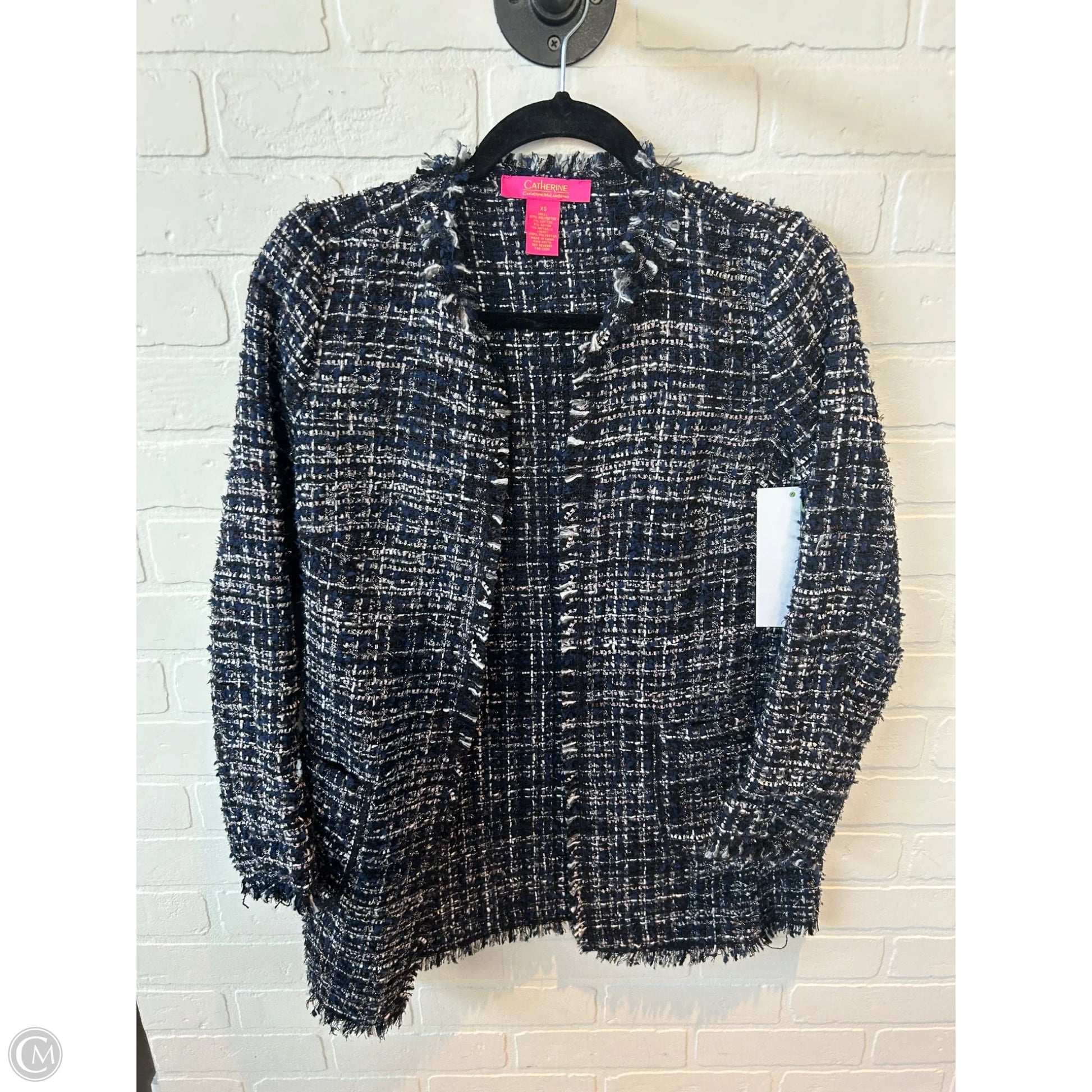Elevate your professional wardrobe with this Catherine Malandrino blazer in black and blue, XS size. Stylish and versatile.