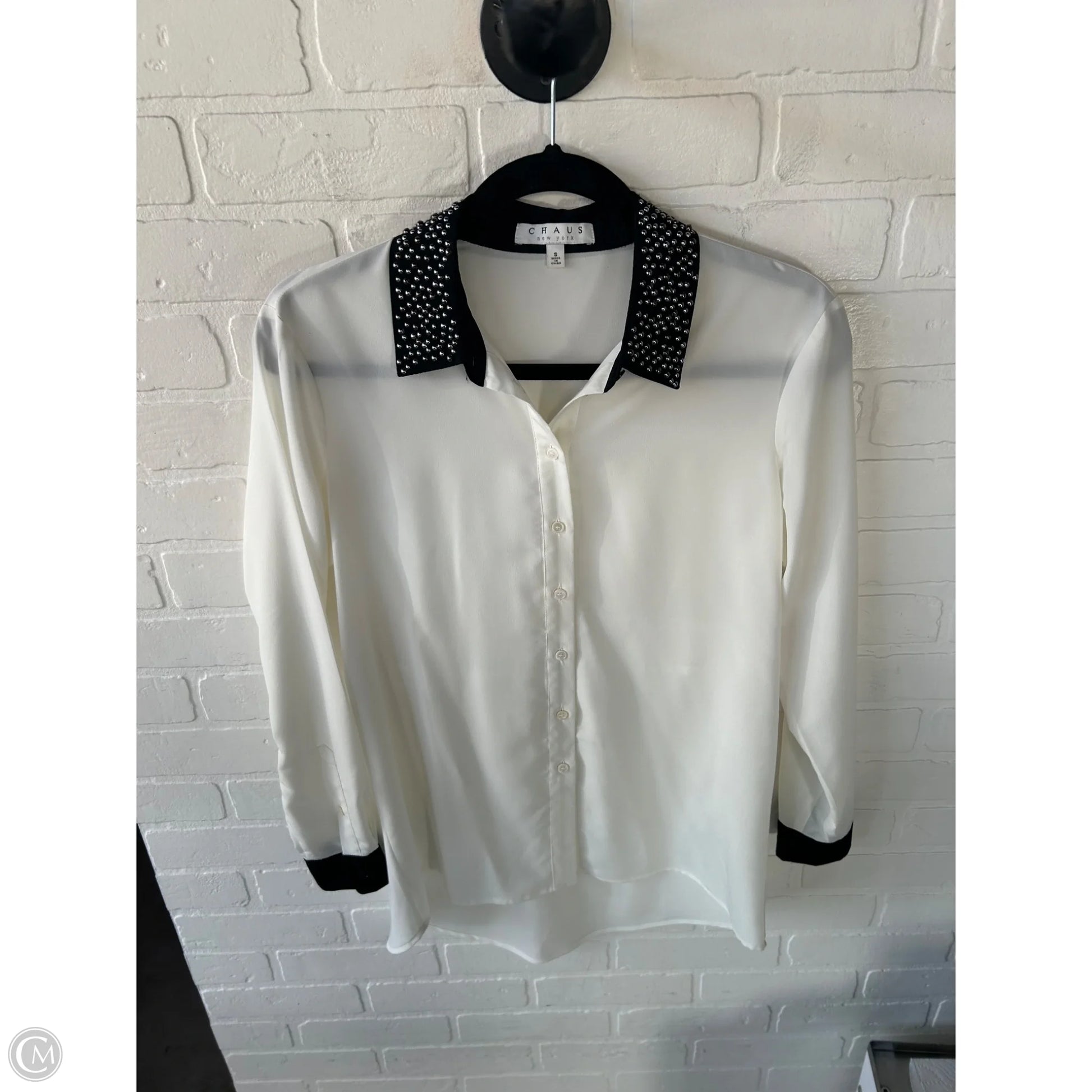 Blouse Long Sleeve By Chaus In Black & White, Size: S