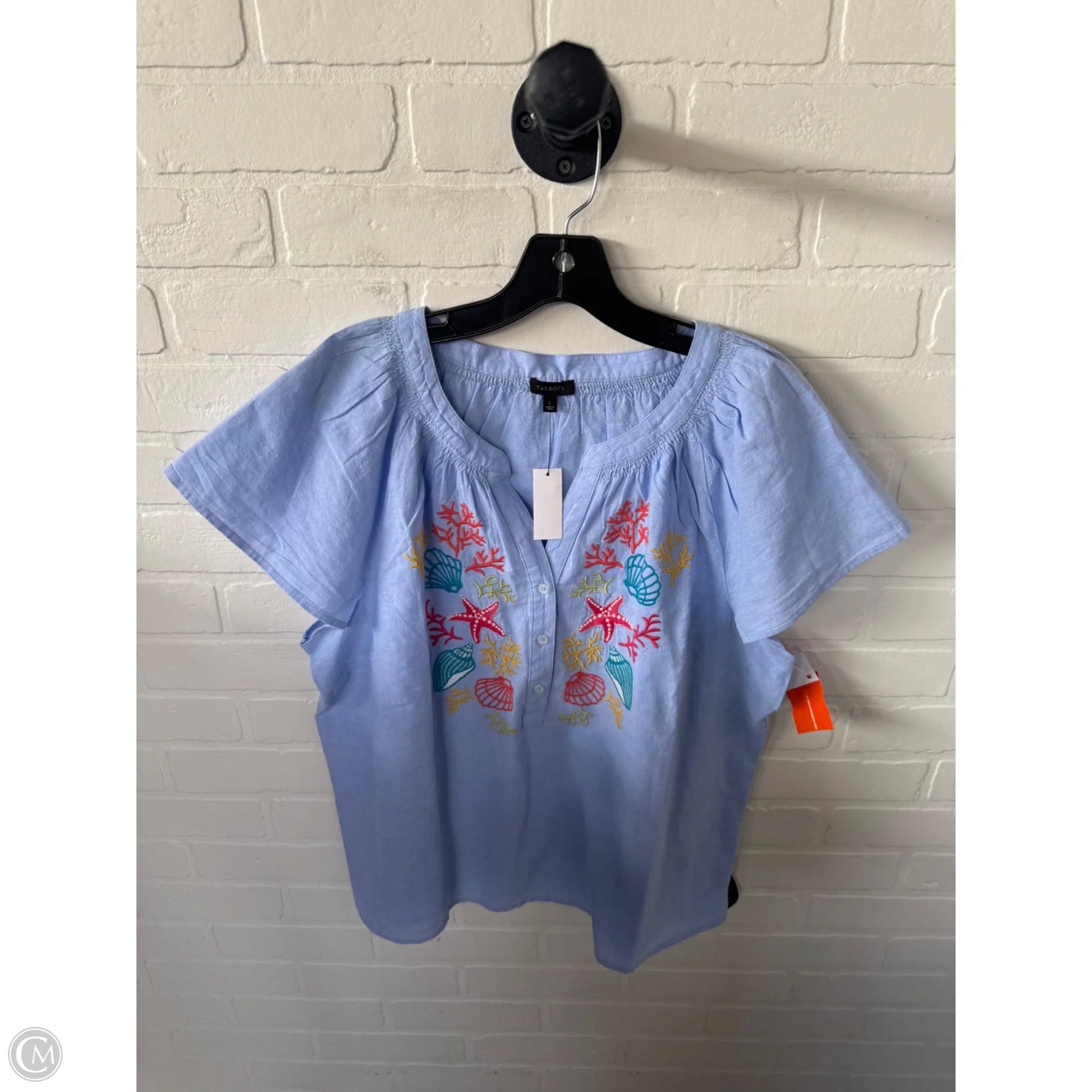 Blouse Short Sleeve By Talbots In Blue & Orange, Size: L