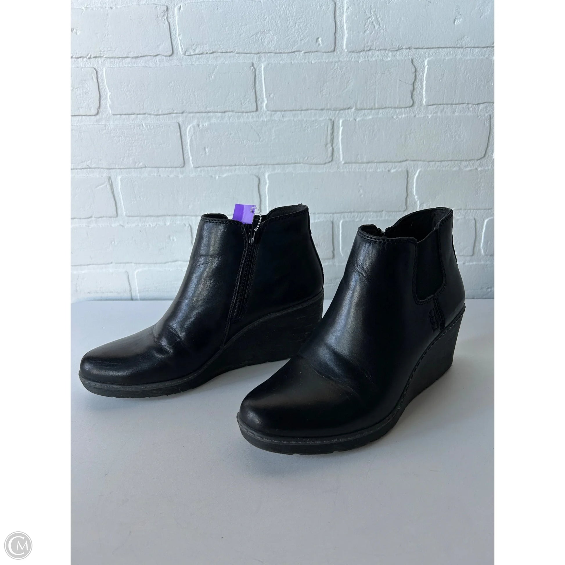 Boots Ankle Heels By Clarks In Black, Size: 7.5