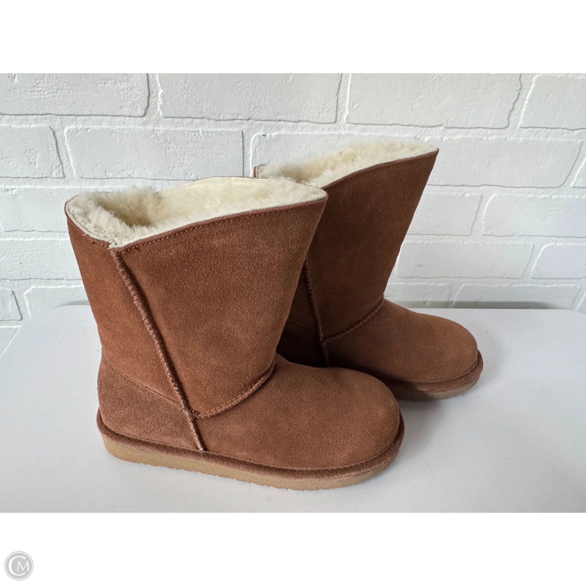 Boots Mid-calf Flats By Cmc In Brown & Cream, Size: 7