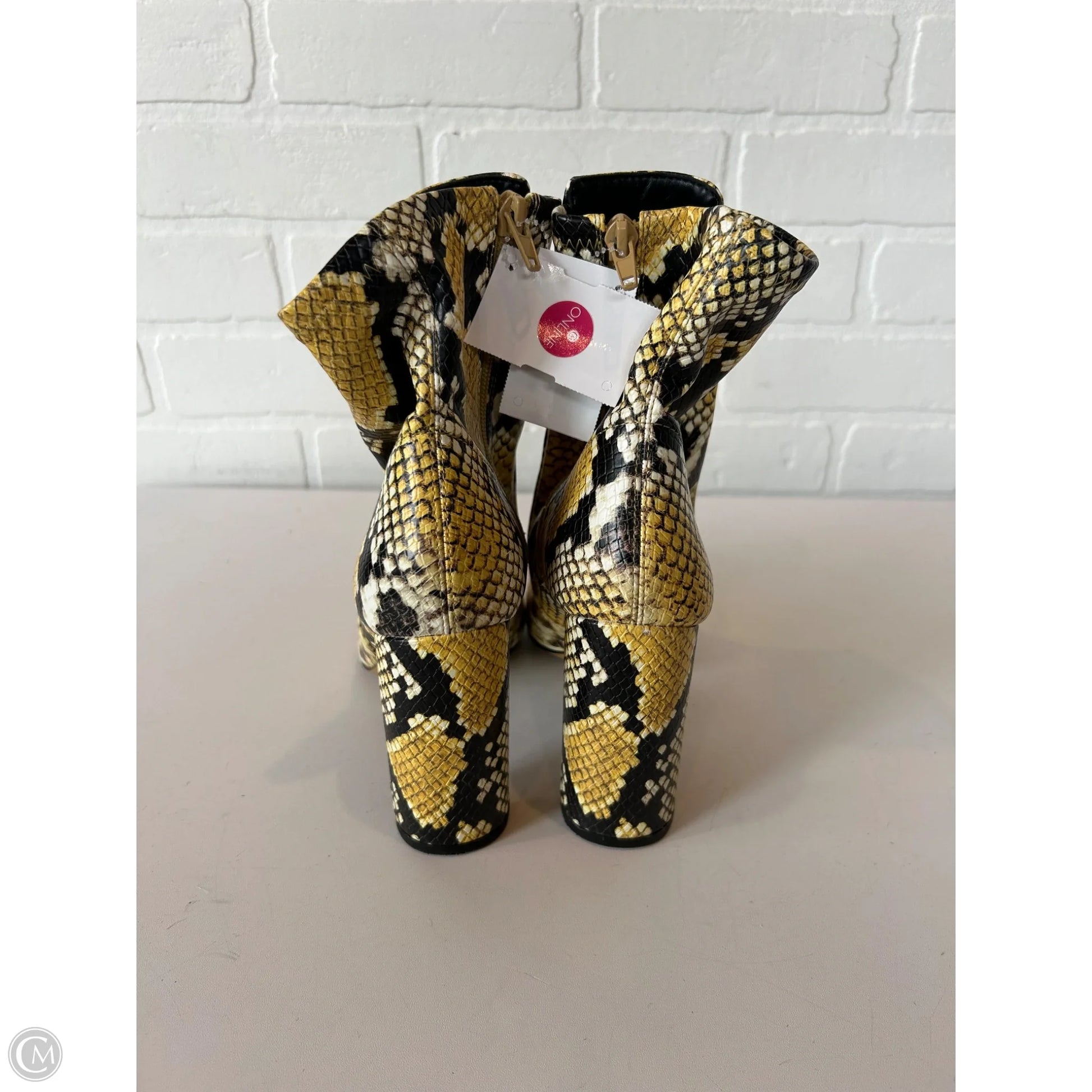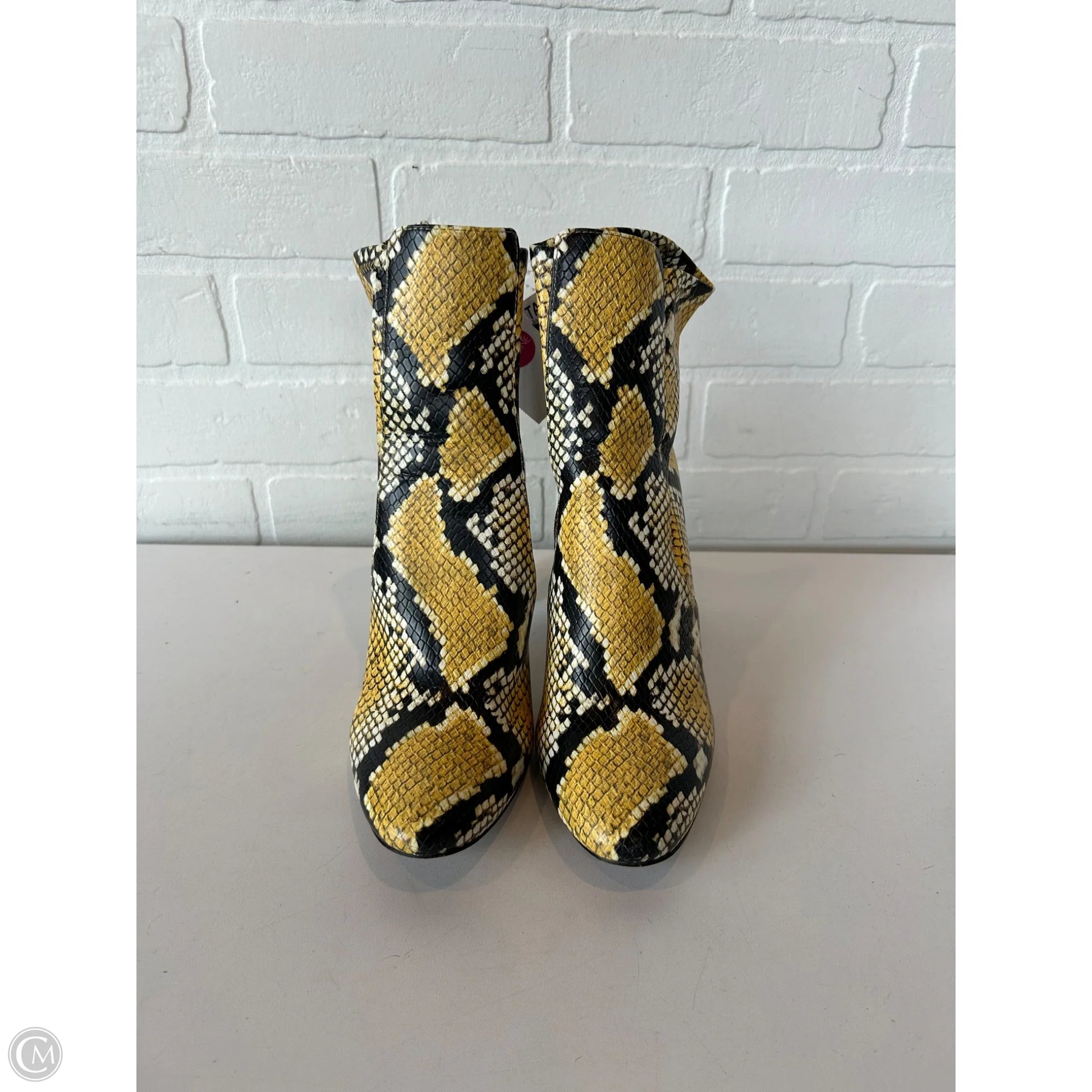 Boots Mid-calf Heels By Aldo In Black & Yellow, Size: 7.5
