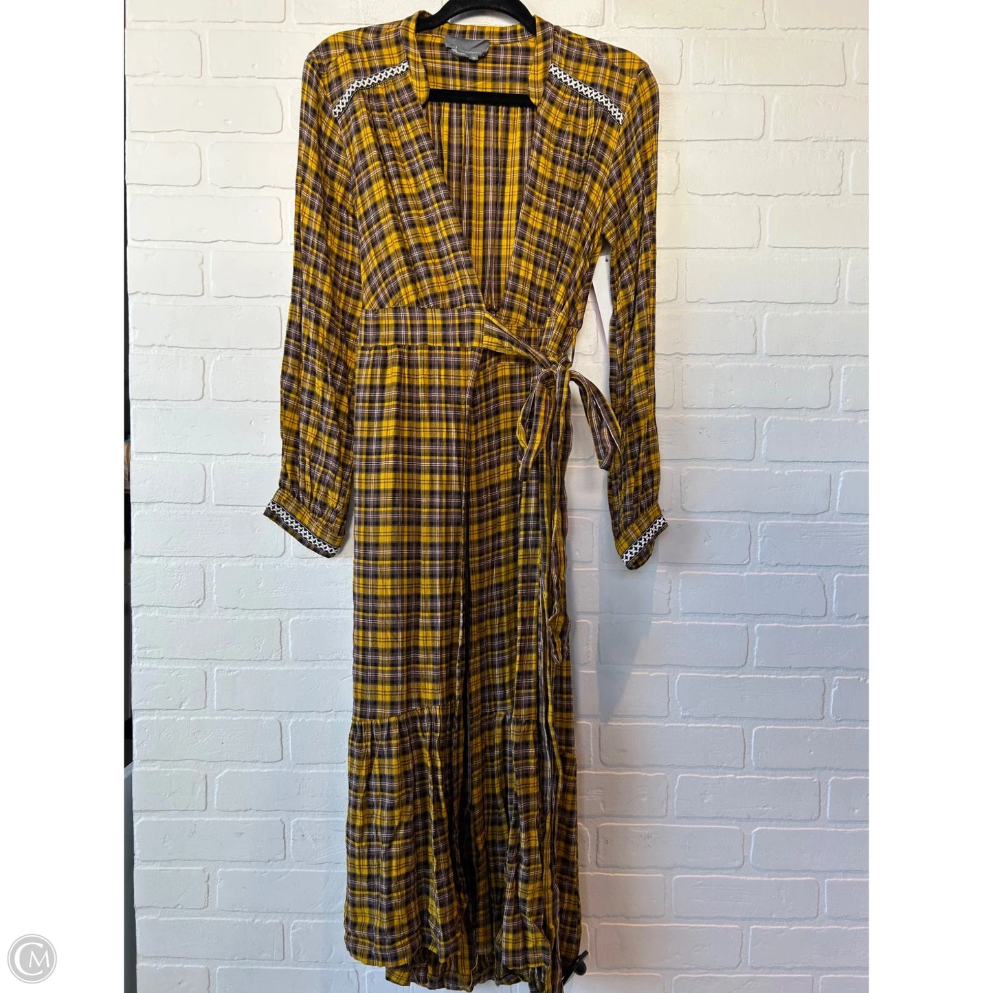 Dress Casual Midi By Anthropologie In Brown & Yellow, Size: Xs