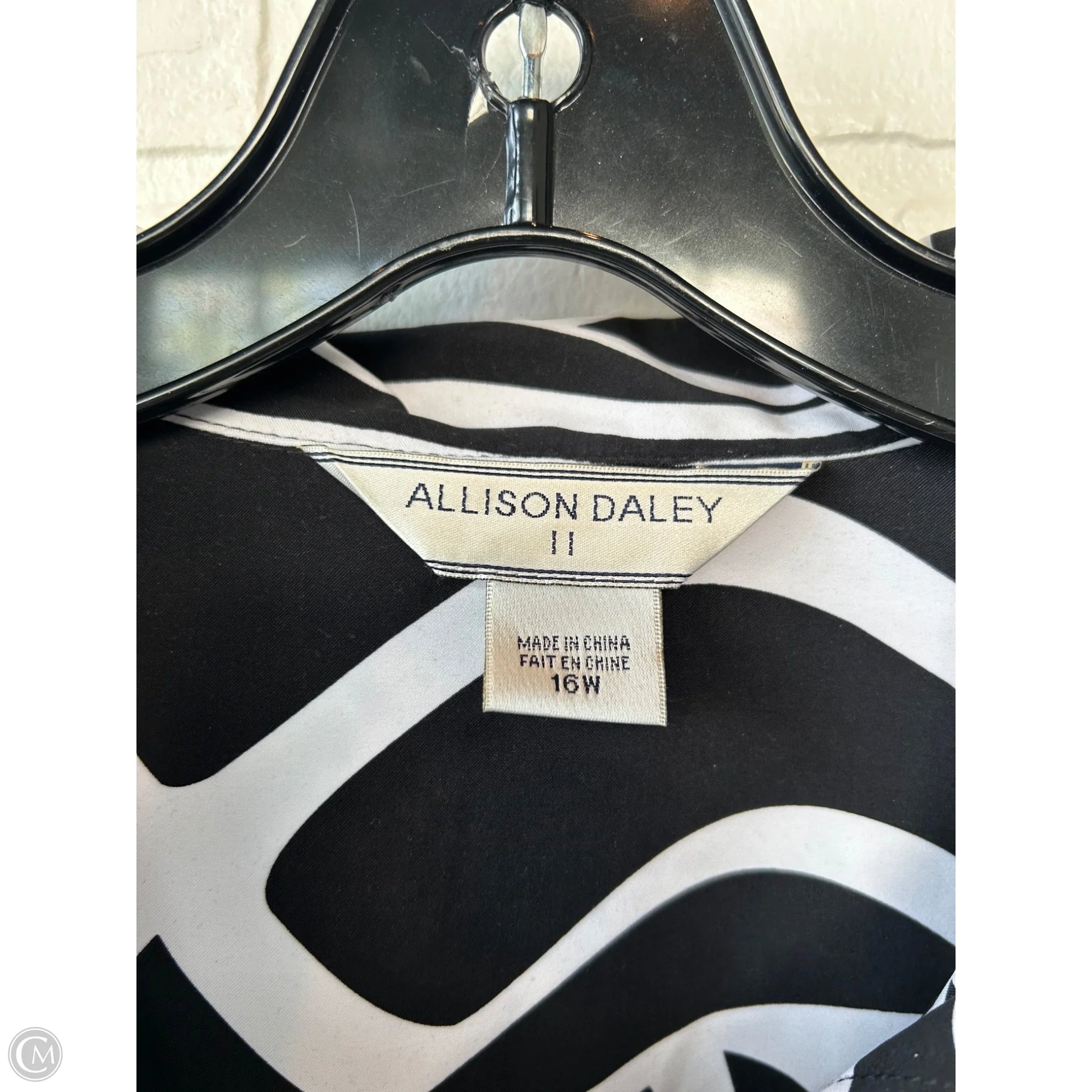 Dynamic black and white Jacket Shirt by Allison Daley in size 1x, exuding confidence and style.