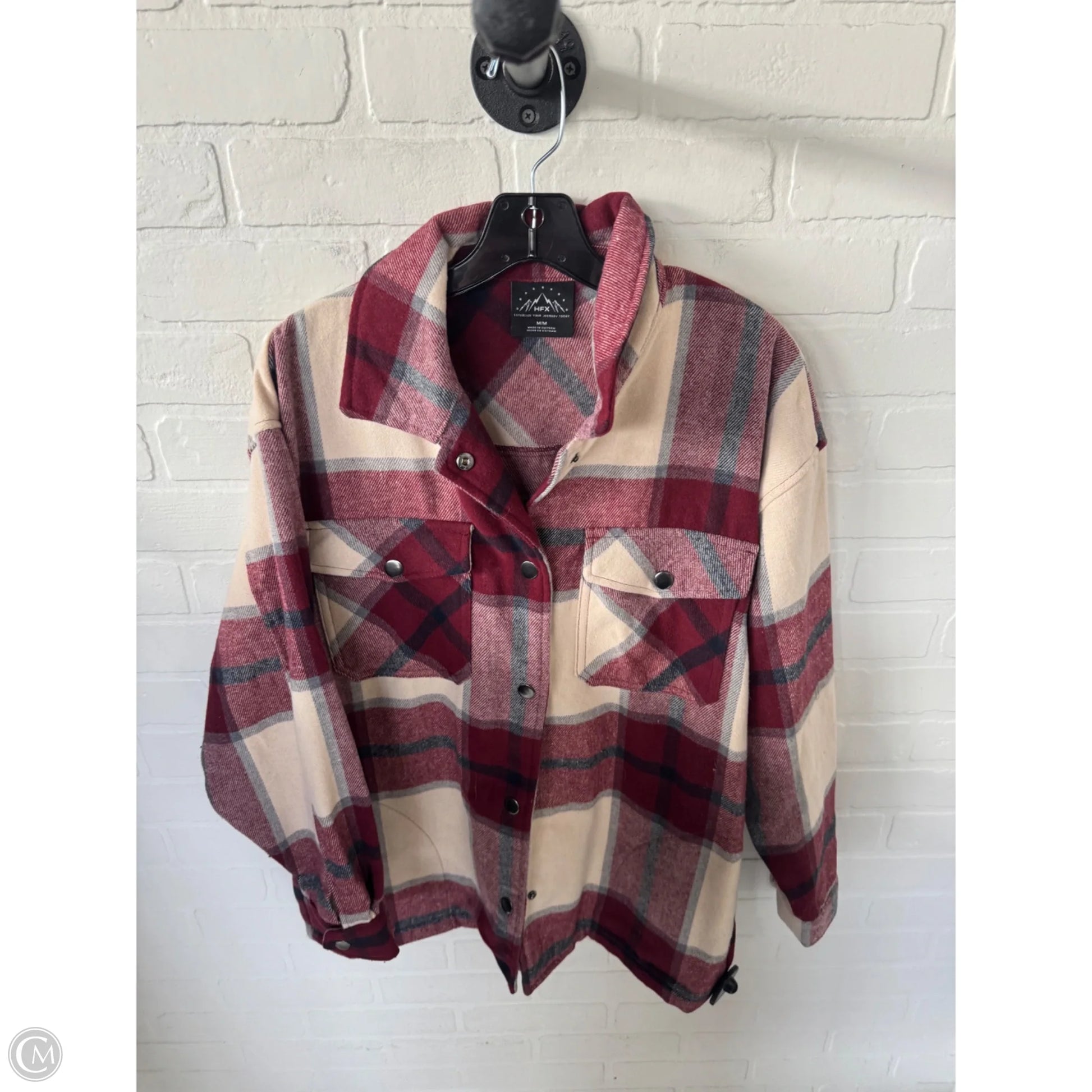 Jacket Shirt By Hfx In Red & Tan, Size: M