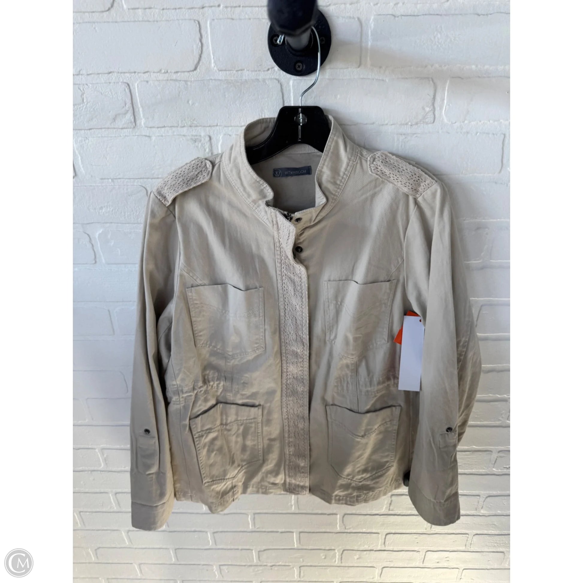 Stay cozy and stylish with the Wit & Wisdom Utility Jacket in Tan, Size M. Perfect for any adventure!