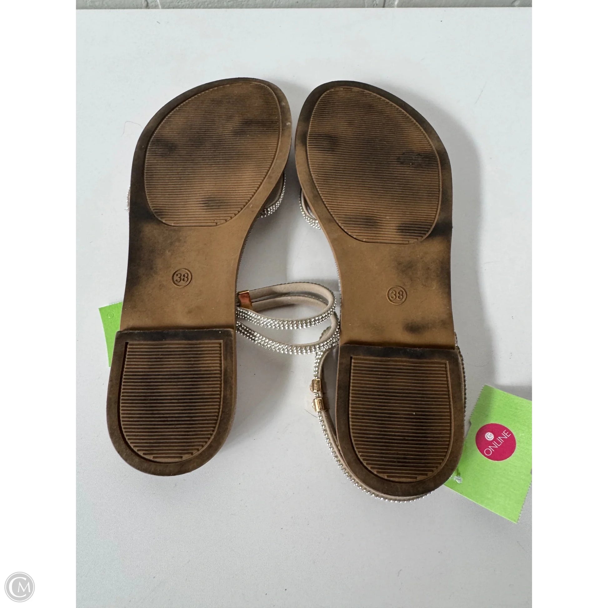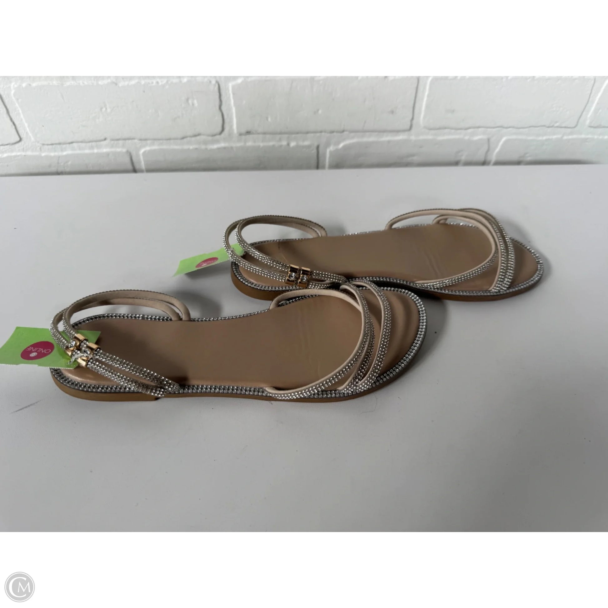 Sandals Flats By Cme In Silver & Tan, Size: 7.5