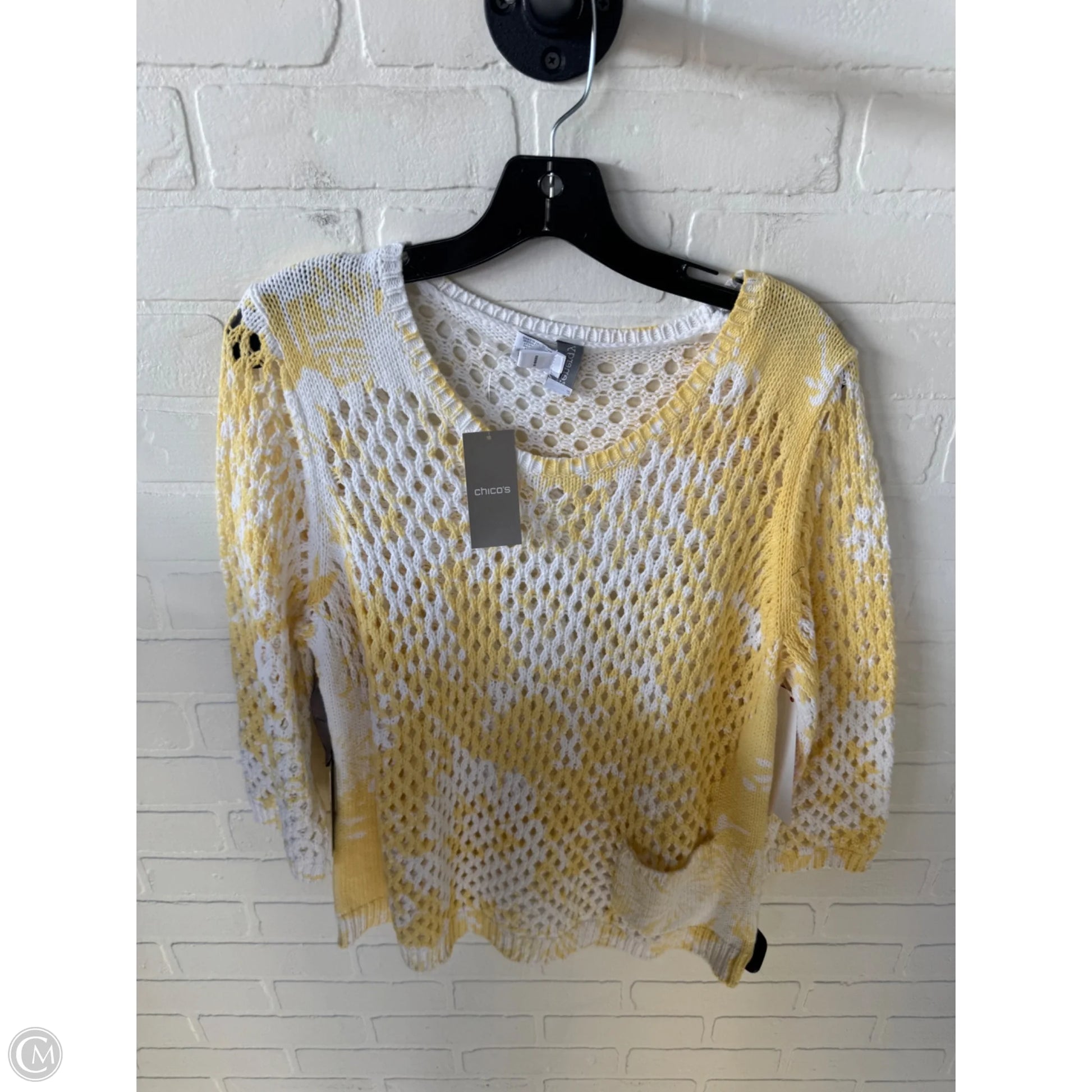 Sweater By Chicos In White & Yellow, Size: Xl