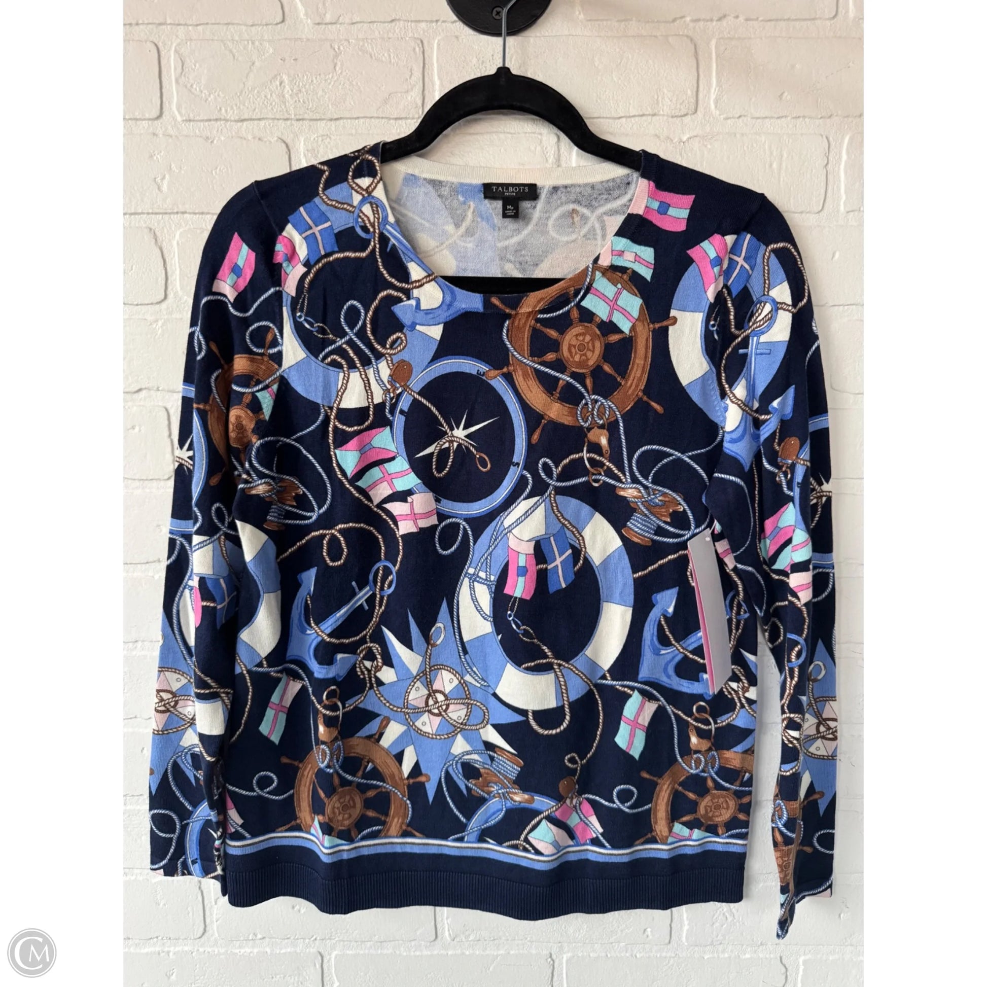 Sweater By Talbots In Blue & White, Size: Mp