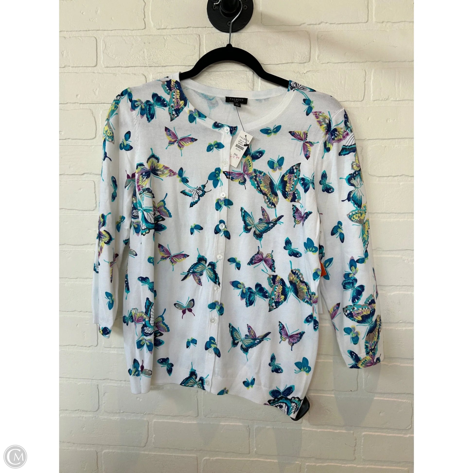 Sweater Cardigan By Talbots In Blue & White, Size: Mp