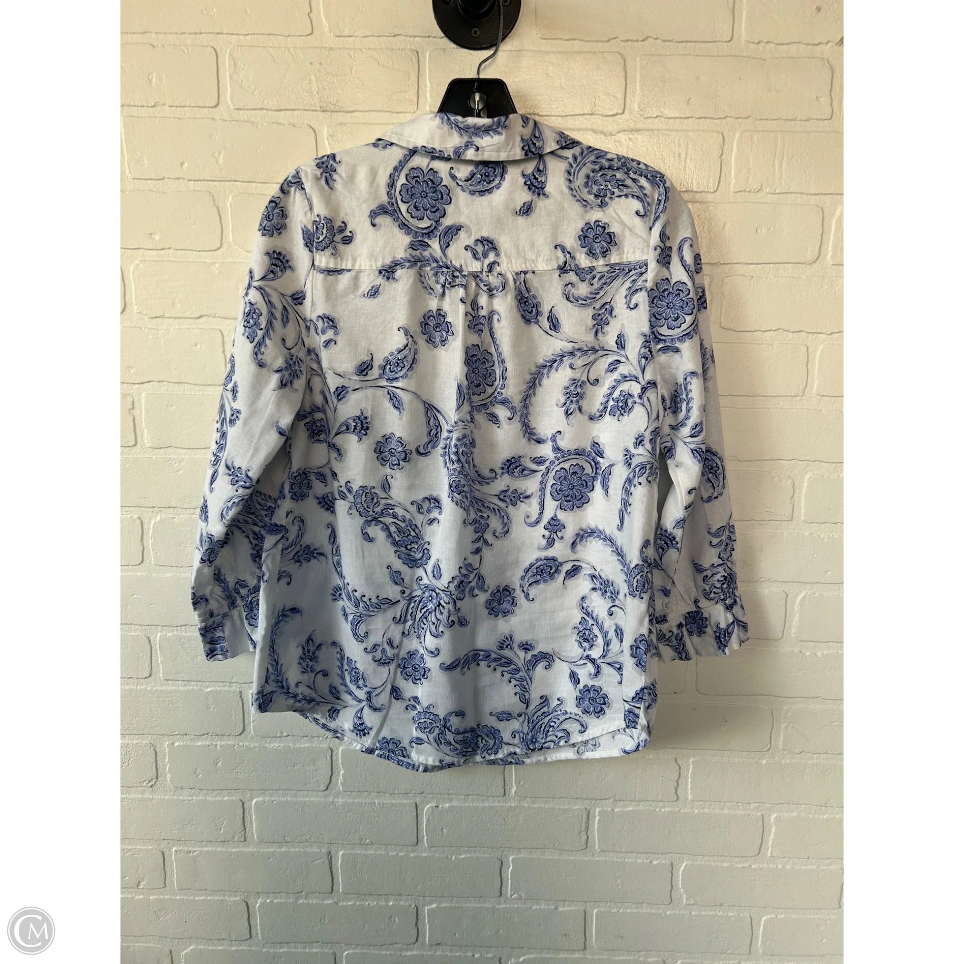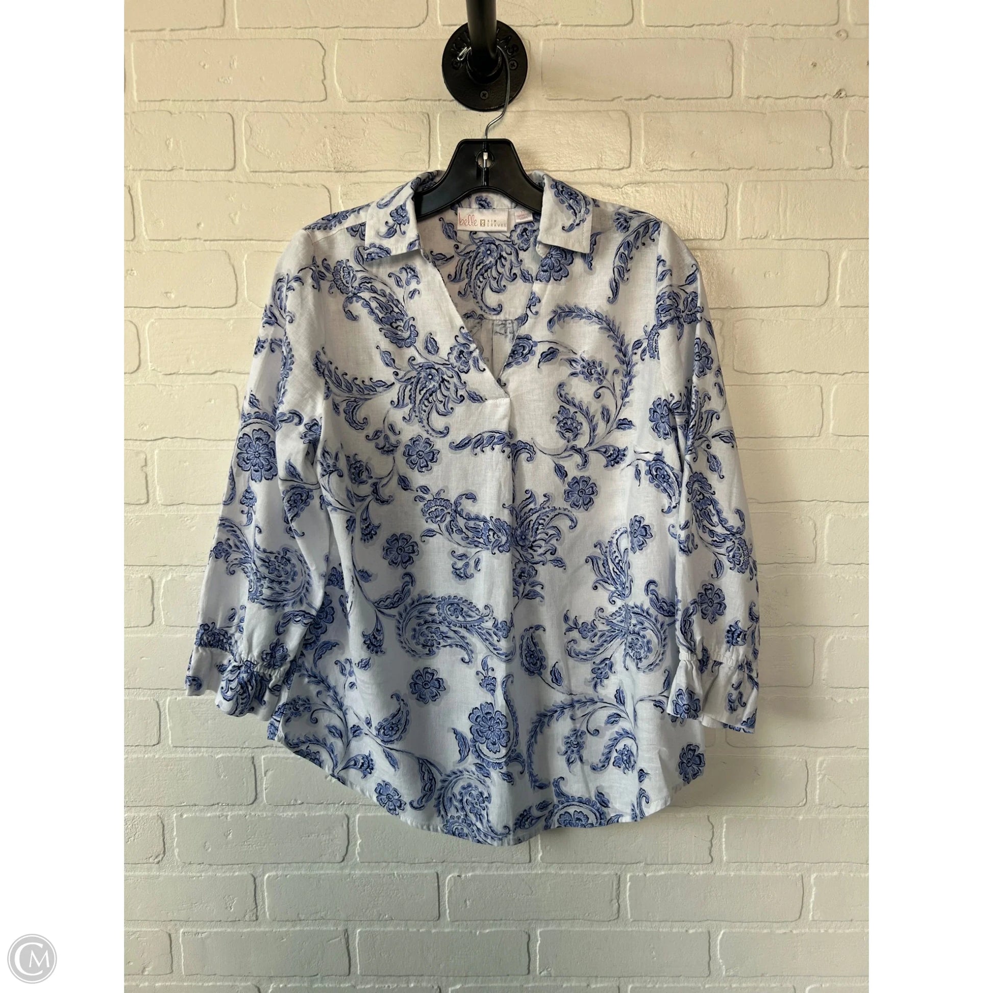 Top 3/4 Sleeve By Belle By Kim Gravel In Blue & White, Size: Xs