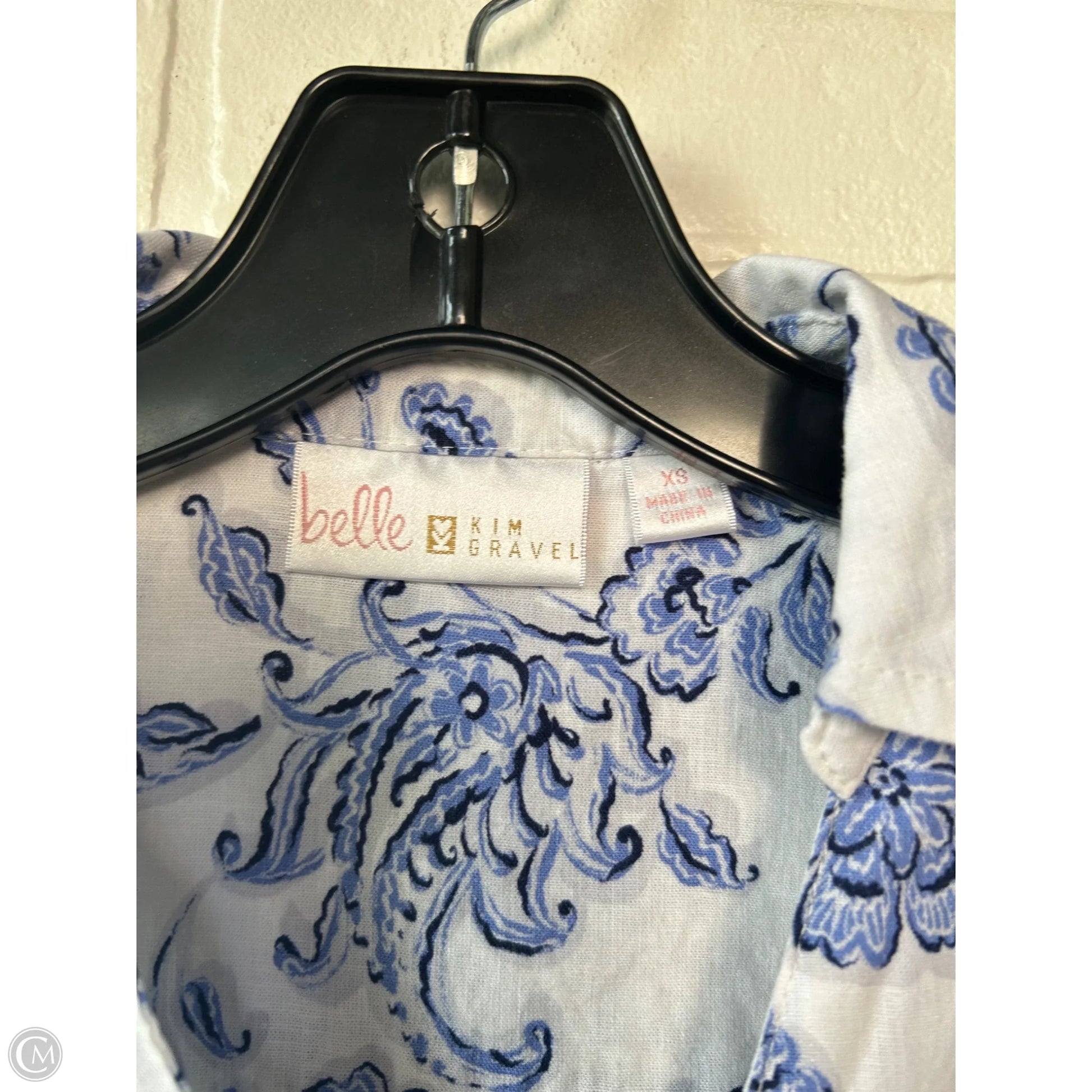 Belle By Kim Gravel Blue & White Top, XS, chic 3/4 sleeves, effortlessly stylish and comfortable.