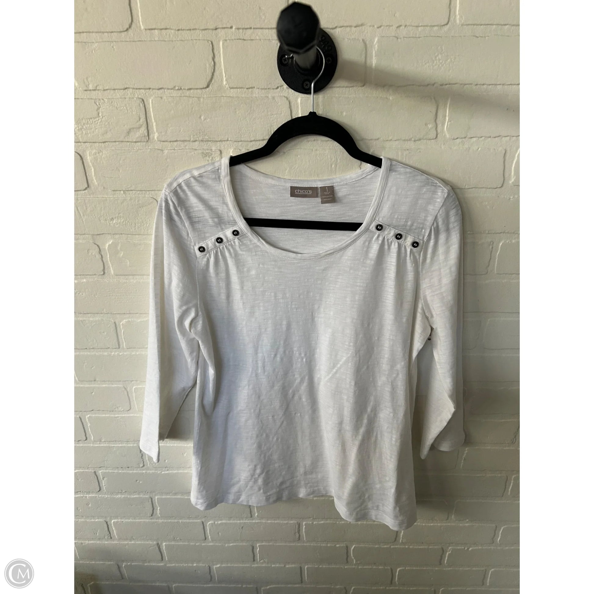 Top 3/4 Sleeve By Chicos In White, Size: M