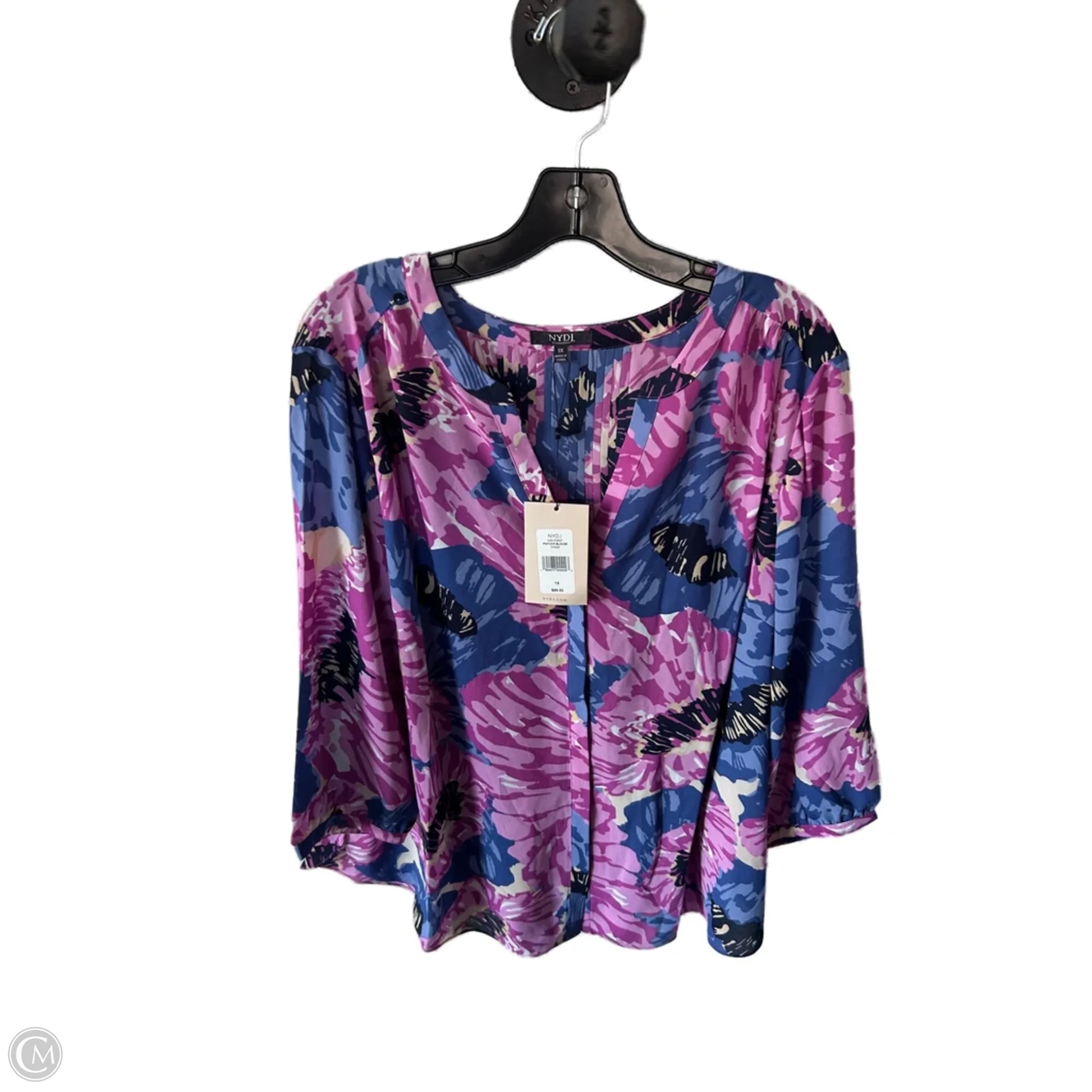 Top 3/4 Sleeve By Not Your Daughters Jeans In Blue & Pink, Size: 1x