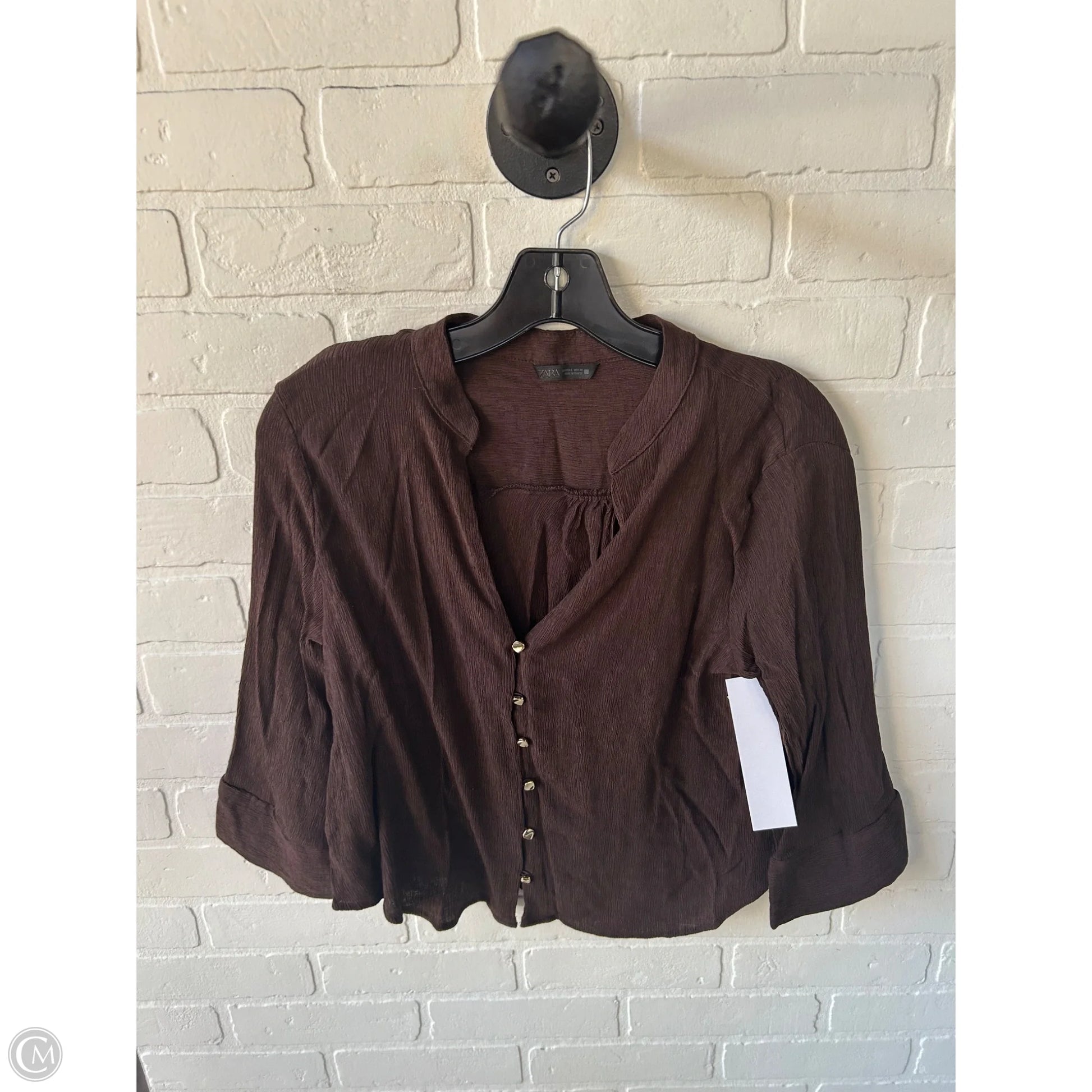 Top 3/4 Sleeve By Zara In Brown, Size: L
