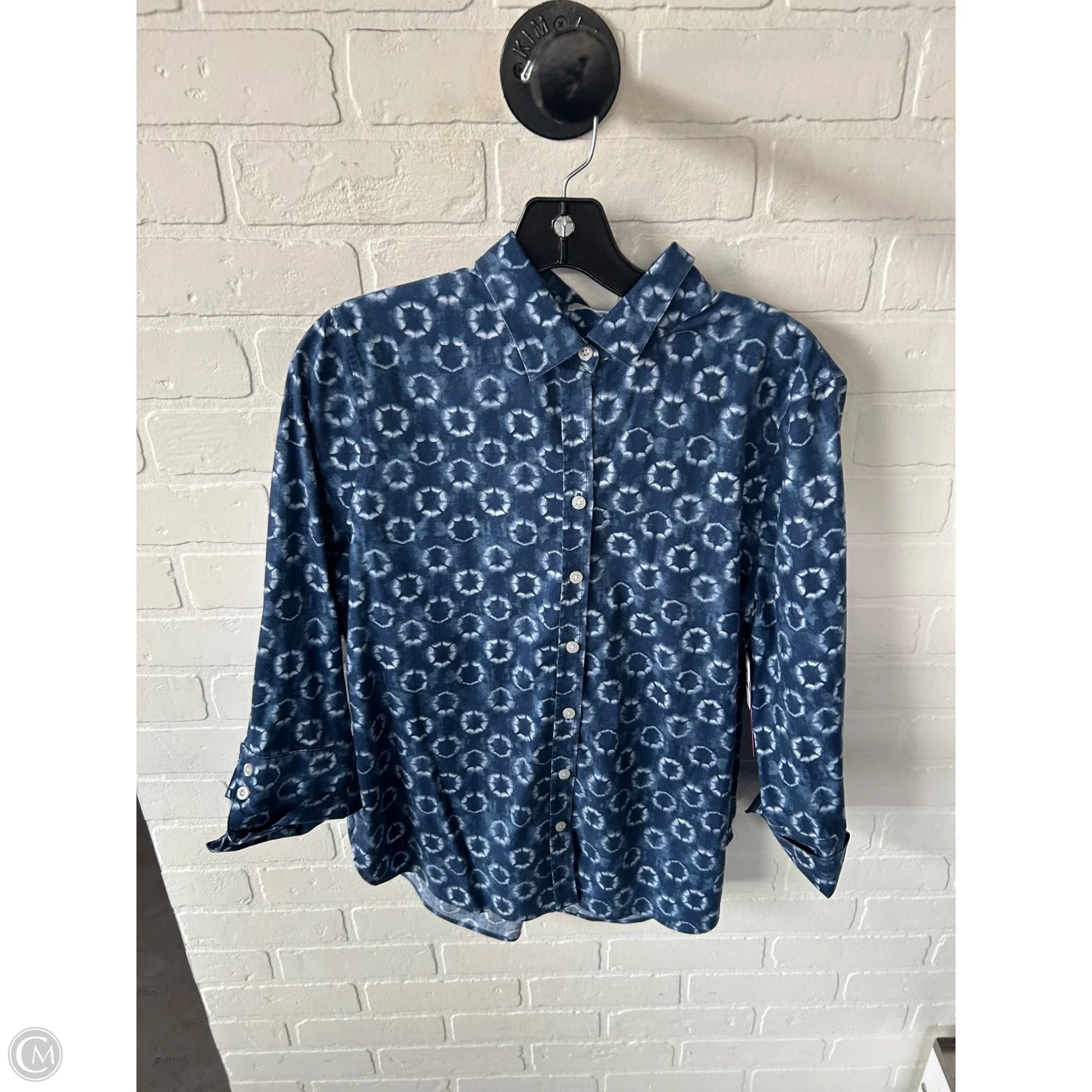 Top Long Sleeve By Chicos In Blue & White, Size: M