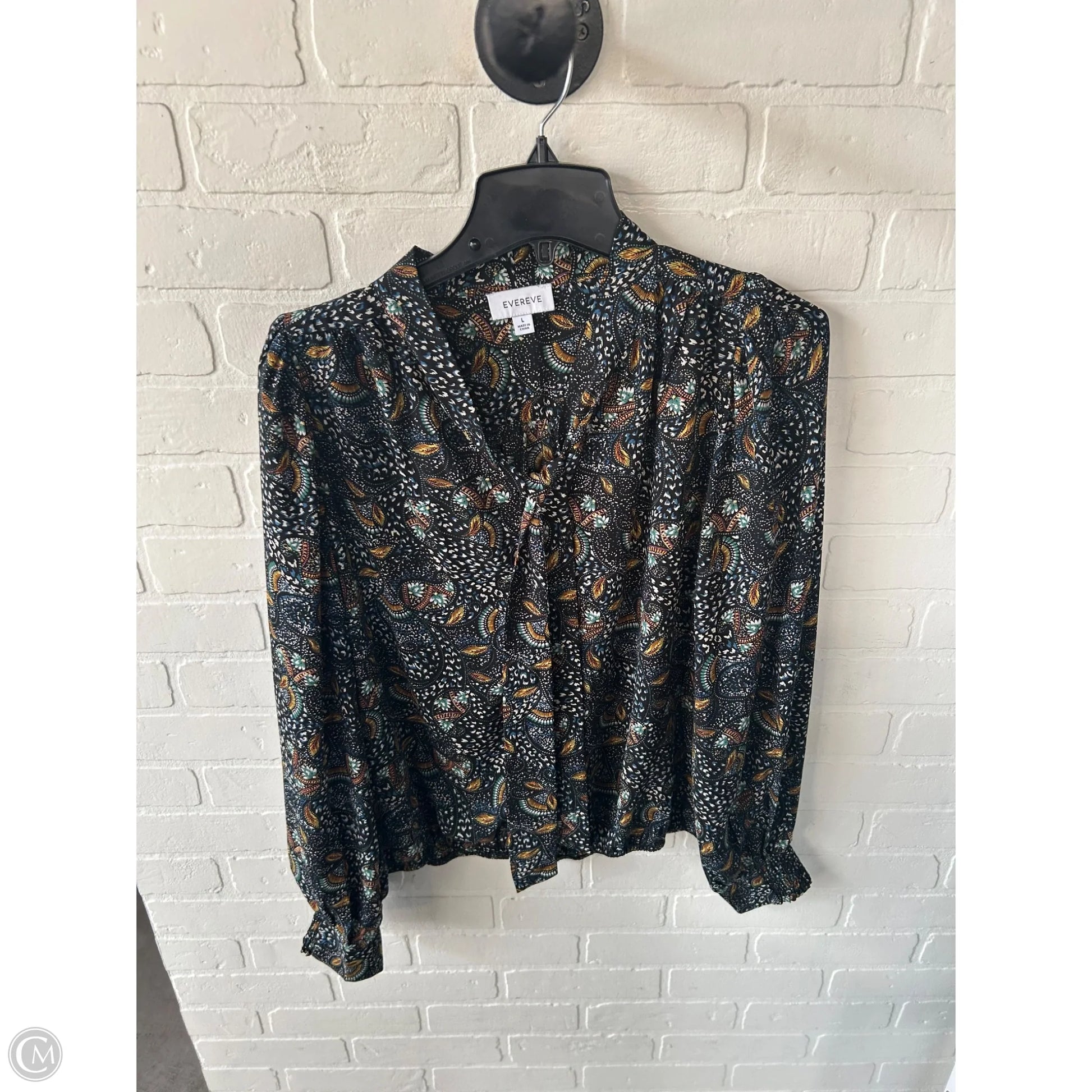 Top Long Sleeve By Evereve In Black & White, Size: L
