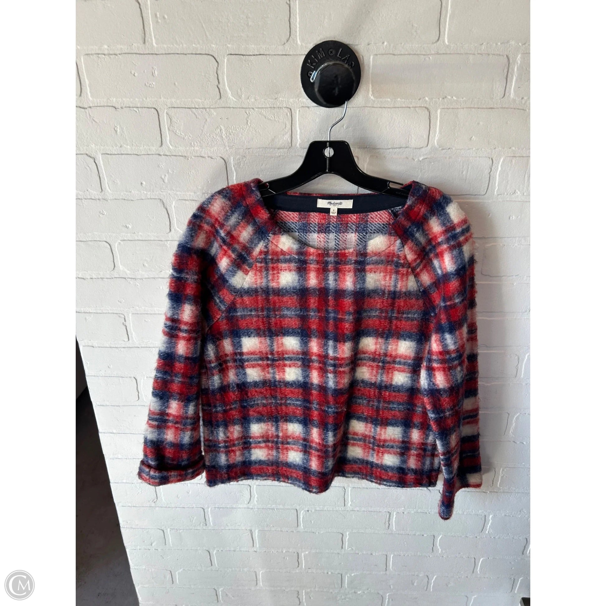 Top Long Sleeve By Madewell In Blue & Red & White, Size: S