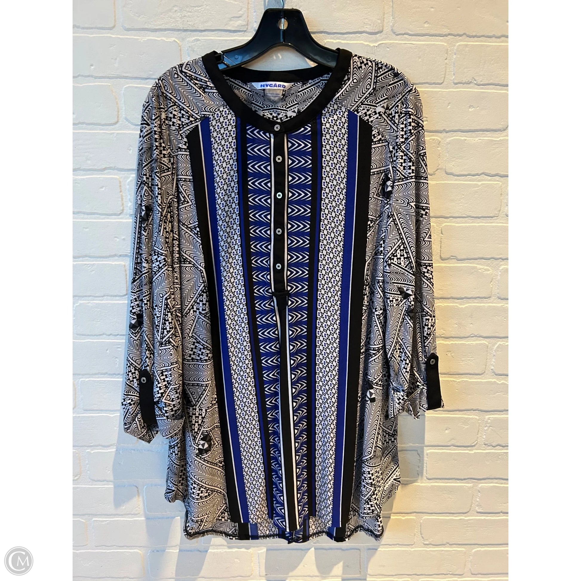 Top Long Sleeve By Nygard Peter In Black & Blue, Size: L