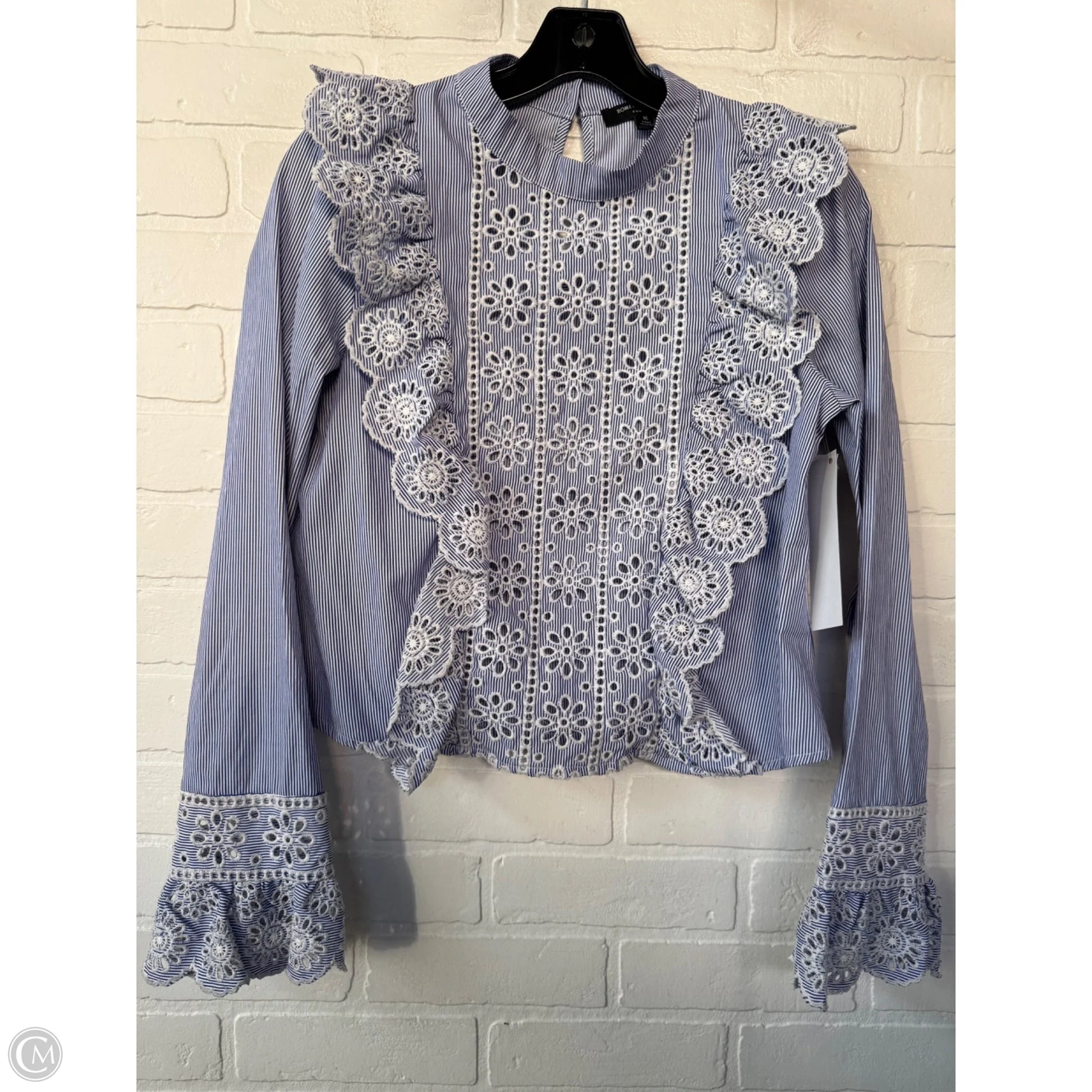 Top Long Sleeve By Romeo And Juliet In Blue & White, Size: M