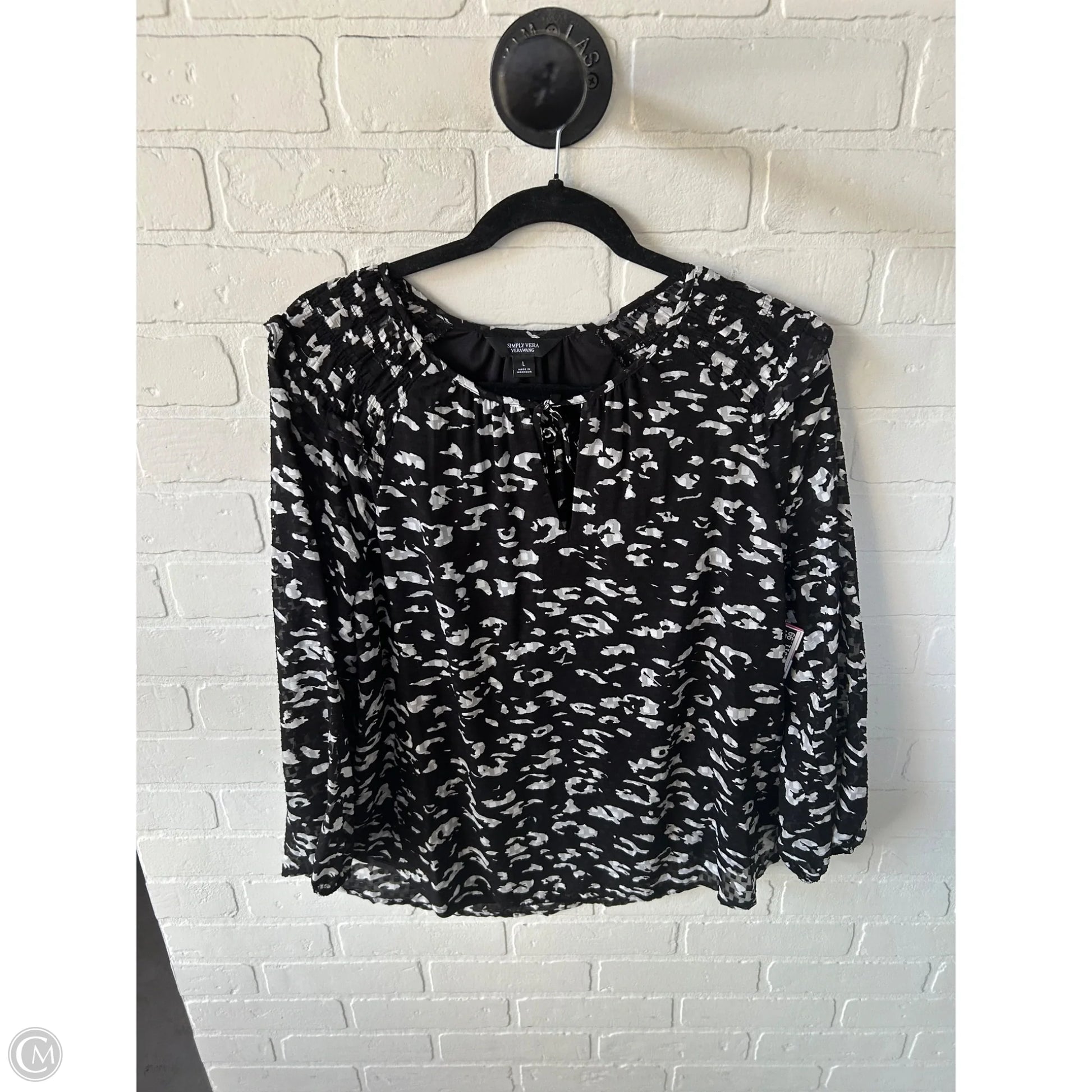 Top Long Sleeve By Simply Vera In Black & White, Size: L
