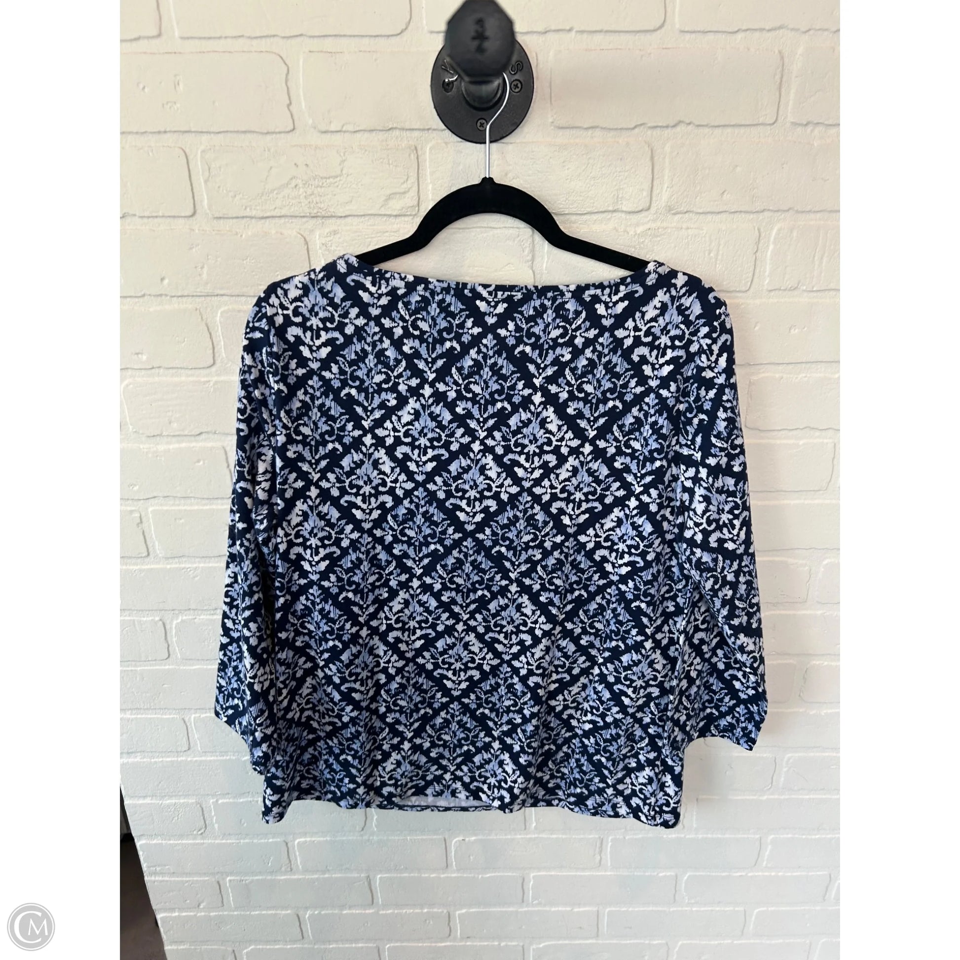 Top Long Sleeve By Talbots In Blue & White, Size: L