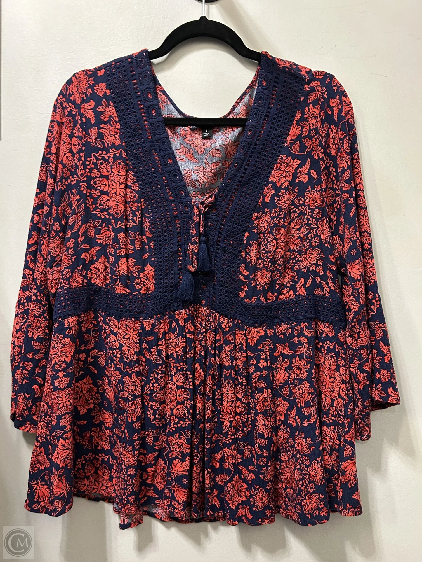 Top Long Sleeve By Torrid In Blue & Red, Size: 1x
