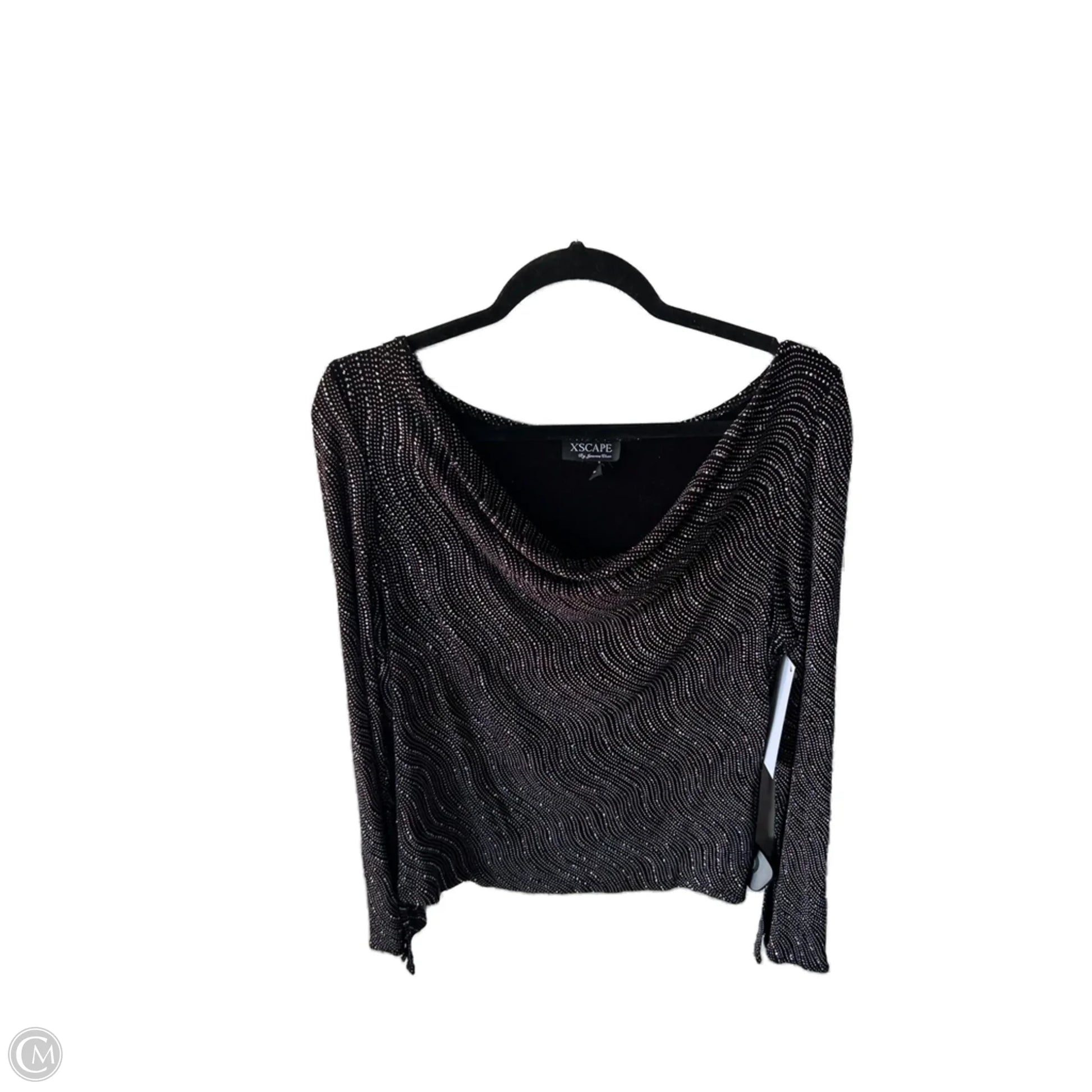 Top Long Sleeve Designer By Xscape In Black & Silver, Size: L