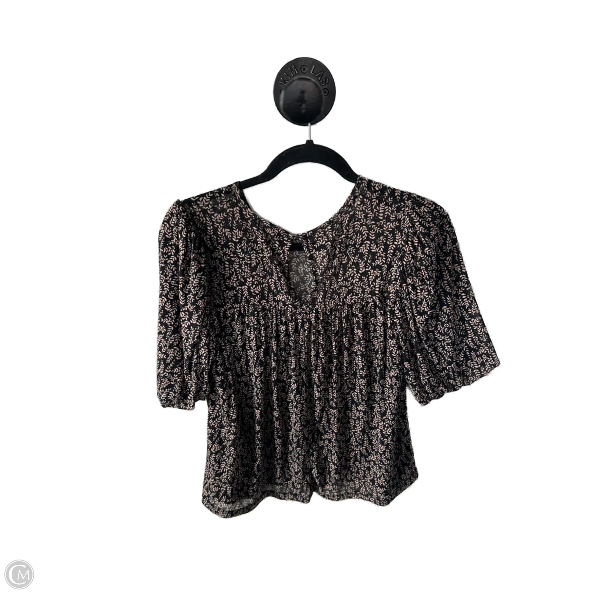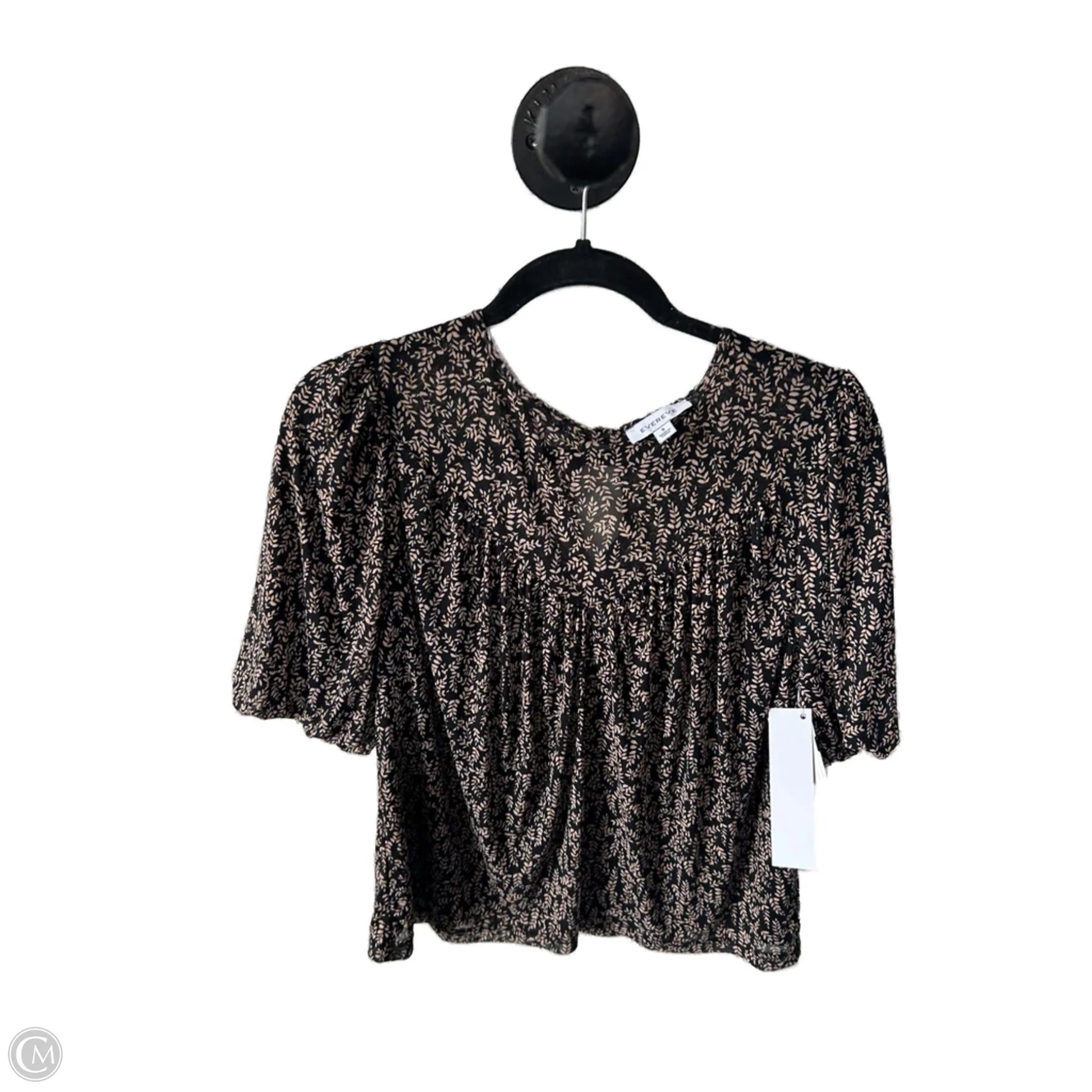 Top Short Sleeve By Evereve In Black & Tan, Size: S