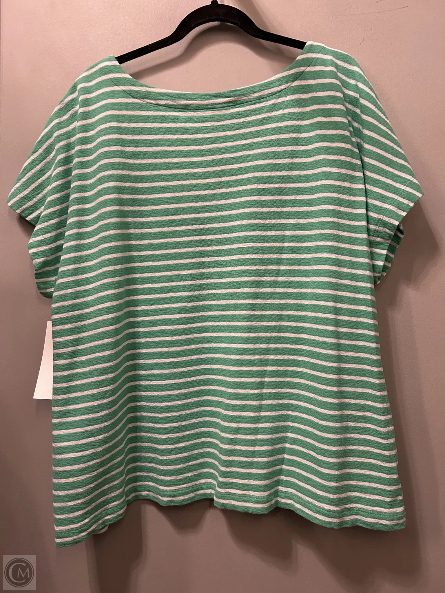 Top Short Sleeve By J. Jill In Green & White, Size: 3x